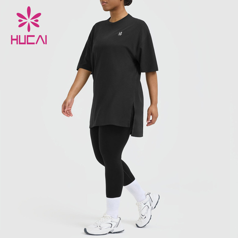 HUCAIカスタム高品質イスラム控えめスポーツウェアアクティブウェアイスラム教徒ロングルーズトップワークアウトランニングジムt女性用シャツ