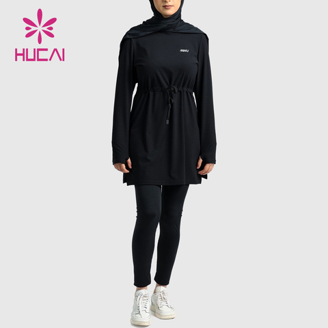HUCAIカスタムロゴレディース控えめアクティブウェアドローストリングワークアウトスポーツジム長袖イスラム教徒特大トレーニングトップ